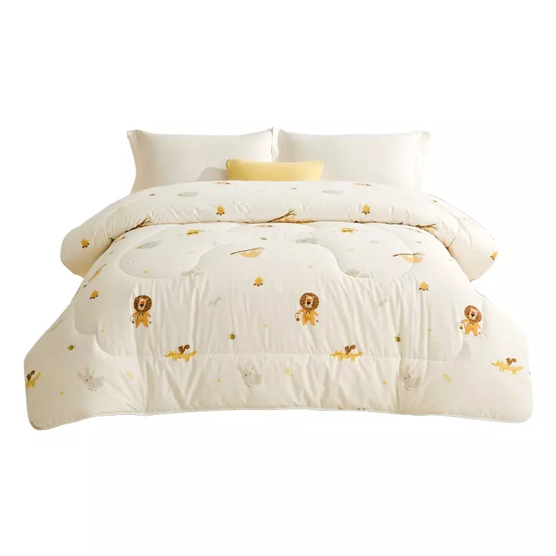 在所有的被子当中,纤维被应该算是价格最适中的,售价一般在100 蚕丝被 ~200元左右。纤维被可分四孔、七孔、九孔被子等。理论上讲,纤维孔数越多其保暖性、弹性、透气性也就越好。但并不一定要选择孔数多的纤维被,若冬季室内温度较高,选择四孔被就可以了,因为事实上这些被子的保暖性是相差不大的。