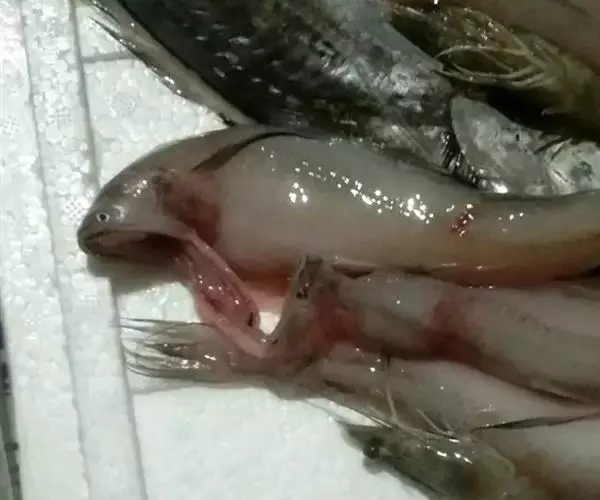 全长25.2毫米稚鱼,体较长而侧扁,肛门位于紧蛞臀鳍正前方,口裂大,下颌较上颌突出,前鳃盖骨显著前倾,各鳍均较长,脂鳍长,从鳃盖至臀鳍前腹侧具7对黑色素,稚鱼夏秋间在吕四近海可采到。