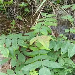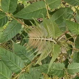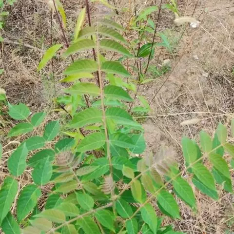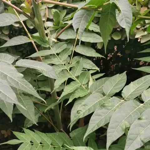 落叶乔木,高达10余米;树皮紫褐色,平滑,有灰色斑纹,全株有苦味。叶互生,奇数羽状复叶,长15-30厘米;小叶9-15,卵状披针形或广卵形,边缘具不整齐的粗锯齿,先端渐尖,基部楔形,除顶生叶外,其余小叶基部均不对称,叶面无毛,背面仅幼时沿中脉和侧脉有柔毛,后变无毛;落叶后留有明显的半圆形或圆形叶痕;托叶披针形,早落。