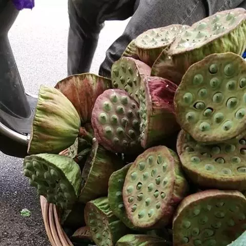 莲蓬又名:莲子肉;藕实;水芝丹;莲蓬子;莲实;蓬肉。莲的花托表面有多数散生蜂窝状孔洞,受精后逐渐膨大而称之为莲蓬。简单来说,莲花中心的果实就是莲蓬。莲蓬像一个碗。
