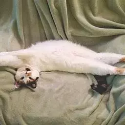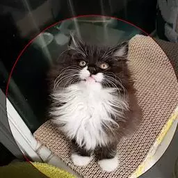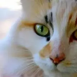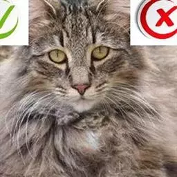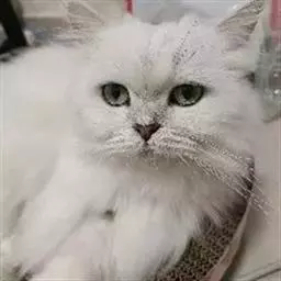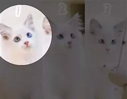 临清狮子猫-鸳鸯眼 毛长,大多为白色,也有花色毛。白猫的话,身上或纯白,或在尾巴、头顶有黑毛,其它部位没有。血统接近纯种的猫背毛不能少于5公分——所谓三寸余(旧制16寸)。带临清狮子猫血统的猫尾毛长度一定大于15公分,少于15公分则就是普通长毛猫,无论是否鸳鸯眼。