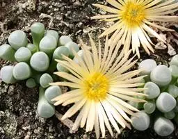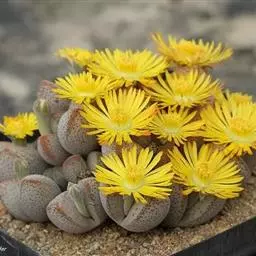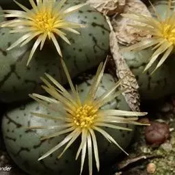 生石花,番杏科生石花属多年生肉质草本植物。植株几乎无茎;花朵较大,颜色艳丽,呈多边形,…
