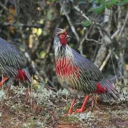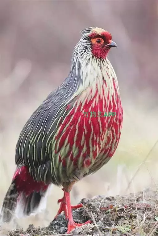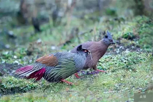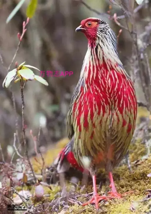 血雉雉科血雉属鸟类,别名血鸡、松花鸡,血雉的雄鸟大覆羽、尾下覆羽、尾上覆羽、脚、头侧、腊膜为红色,…