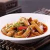 1. 香菇用清水浸软,去蒂,切细丝,胡萝卜,榨菜分别洗净,切细丝,豆芽,韭黄分别洗净,韭黄切段。