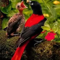 本种特有的高音似啄木鸟的kich叫声,也发出黄鹂特有的笛音。