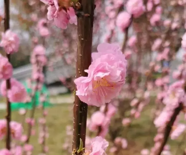 美人梅是蔷薇科李属的落叶小乔木。叶互生,呈广卵形或卵形,紫红色;花呈淡紫红色,半重瓣或重瓣,花叶同放,…