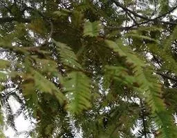 乔木,高达20余米;枝条扩展,树冠扁圆形;树皮灰色,具浅纵裂;幼枝被有短茸毛。