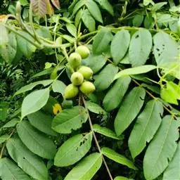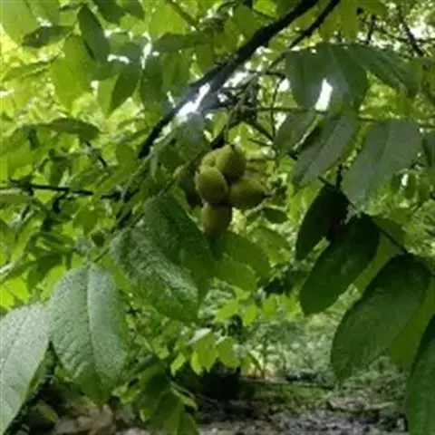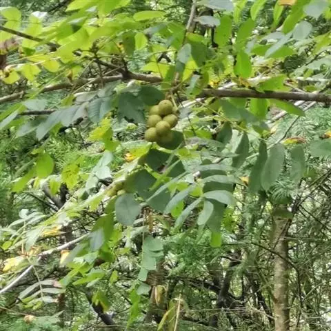 胡桃楸是胡桃科、胡桃属的乔木植物。株高可达20余米;茎皮灰色;叶椭圆形、长椭圆形、卵状椭圆形或长椭圆状披针形,具细锯齿,上面初疏被短柔毛,后仅中脉被毛,下面被平伏柔毛及星状毛;雄葇荑花序轴被短柔毛,雌穗状花序轴被茸毛;果序俯垂,果球形、卵圆形或椭圆状卵圆形,顶端尖,密被腺毛,果核棱间具不规则皱曲及凹穴,顶端具尖头;种仁较小;花期5月;果期8-9月。胡桃楸分布于中国黑龙江、吉林、辽宁、内蒙古、山西、河南、河北等省地,朝鲜、俄罗斯、日本等国家亦有分布。其喜温暖凉爽的生存环境,适宜在土层深厚、疏松肥沃、排水良好的黑垆土上栽培。一般繁殖方式为种子繁殖。胡桃楸具有止痛、敛肺定喘、温肾润肠、清热解毒等功效,可用于治疗胃痛、神经性皮炎、体质虚弱、肺虚咳嗽、肾虚腰痛、细菌性痢疾等症状。因其木材反张力小、不挠不裂,可作枪托、车轮、建筑等重要材料。