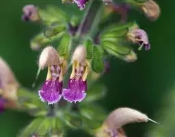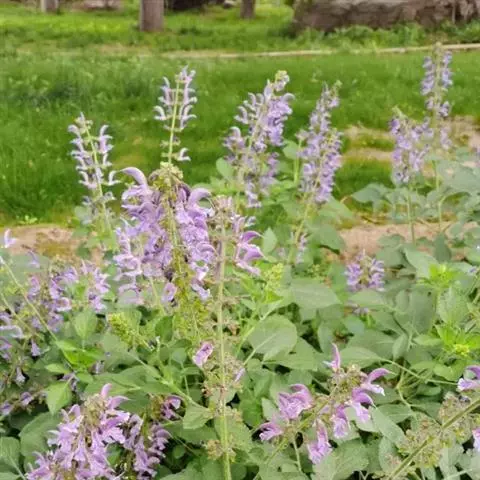 天蓝鼠尾草(Saiviaofficinalis)又名洋苏叶,为唇形科多年生植物,根系发达,地上部分丛生,茎近于木质,较矮,叶对生,灰银色,椭圆形有锯齿,叶柄较长,上密布白色绒毛,触感犹如天鹅绒,基部叶片近叶柄较窄,茎上叶片长,较尖。花6-10朵成串轮生于茎顶花序上十分美丽。种子近园形,千粒重4克,发芽力3年以上。成株高80厘米,盆栽30-50厘米,开蓝紫色至粉紫色花,有香味,叶有浓郁的香味。花可用来泡茶,散发清香味可清净体内油脂,帮助循环,能发挥养颜美容之功效。