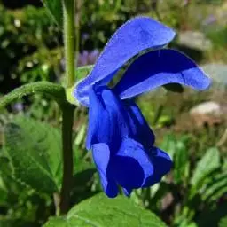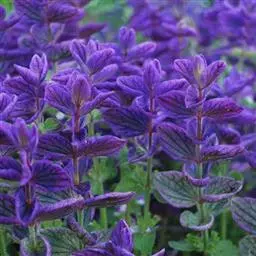 天蓝鼠尾草根系发达,地上部分丛生,为多年生草 天蓝鼠尾草 本植物,茎基部略木质化,株高30-90厘米,较矮,全株组织内含挥发油,具强烈芳香和苦味,略有涩味。茎四方形,分枝较多,有毛。叶对生,灰银色,长椭圆形,先端圆,长3-5厘米,有叶柄,全缘或具钝锯齿,绿色,质地厚,叶面有折皱,上密布白色绒毛,触感犹如天鹅绒,基部叶片近叶柄较窄,茎上叶片长,较尖。8月开花,唇形花10个左右轮生,开于茎顶或叶腋,花紫色或青色,有时白色,花冠唇形。 花6-10朵成串轮生于茎顶花序上十分美丽。种子近圆形,千粒重4克,发芽力3年以上。