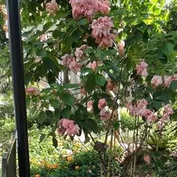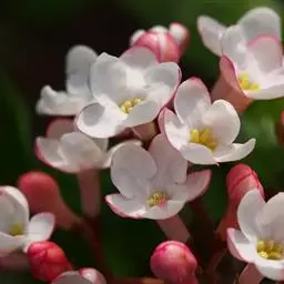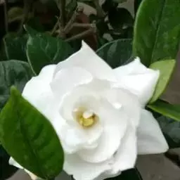 栀子花,花朵簇状约30枚瓣,奶油色,中心黄色;花径12cm;气味果香.