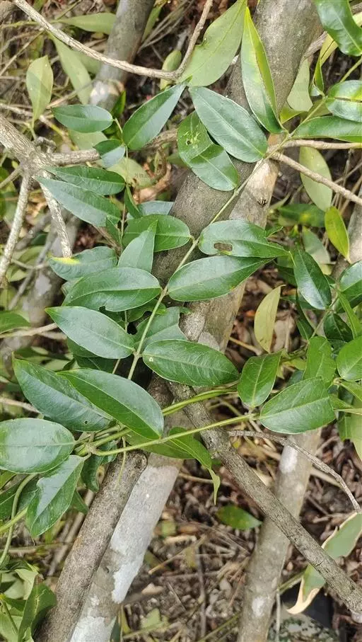 藤本或攀缘灌木,长通常2-5米;枝多数,圆柱形,节明显,被柔毛或无毛,幼嫩时密被黄褐色倒伏的硬毛。叶坚纸质至革质,卵形、卵状长圆形至披针形,长2-9.5厘米,宽0.8-3.5厘米,顶端短尖、渐尖至尾状渐尖,基部圆形,干时黄绿色,上面稍光亮,两面无毛或稀被长硬毛,中脉在两面均有疏长硬毛,边缘无毛或有疏睫毛;侧脉3-4对,纤细,在下面明显或稍明显;叶柄长2-5毫米,有硬毛,稀无毛;托叶披针形,长3-7毫米,脱落。花单生于叶腋,常对生;花梗纤细,长3-18毫米,无毛或有柔毛,常在上部有1对长约1毫米的小苞片;花萼长2.5-3.5毫米,无毛或有柔毛,萼管卵形,檐部5裂,裂片卵状三角形,长0.8-1毫米;花冠白色或黄色,高脚碟状,外面被绢毛,长1.2-2厘米,冠管圆筒形,长0.8-1.5厘米,宽约1.5毫米,内面上部有柔毛,裂片5,长圆形,长4-6毫米,宽约1.5毫米,内面中部有柔毛,开放时反折;雄蕊5枚,花丝短,花药线状披针形,长3.5-4毫米,伸出;花柱长约13毫米,无毛,柱头纺锤形,长2.5-3毫米,伸出。蒴果稍扁球形,中间有1浅沟,直径5-8毫米,长4-6毫米,淡黄色,果皮硬,木质,顶有宿存萼裂片,果柄纤细,长可达2厘米;种子多数,近圆形,薄而扁,棕黑色,直径1.5-2毫米,边缘流苏状。 花期5-7月,果期5-12月。