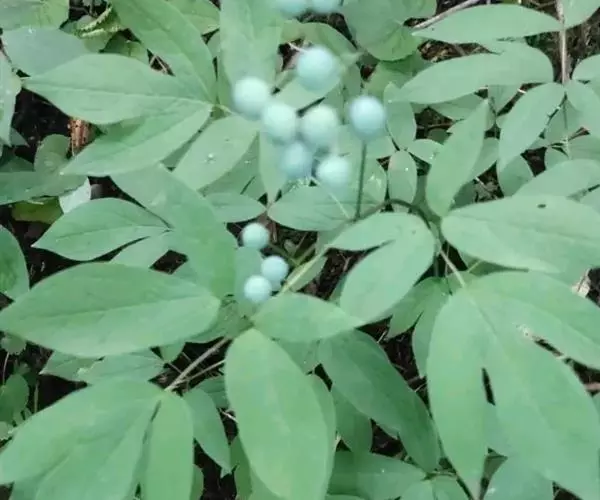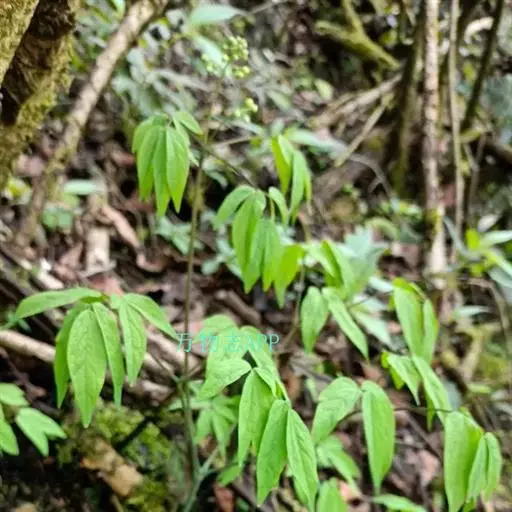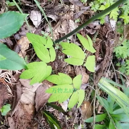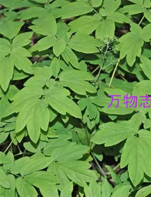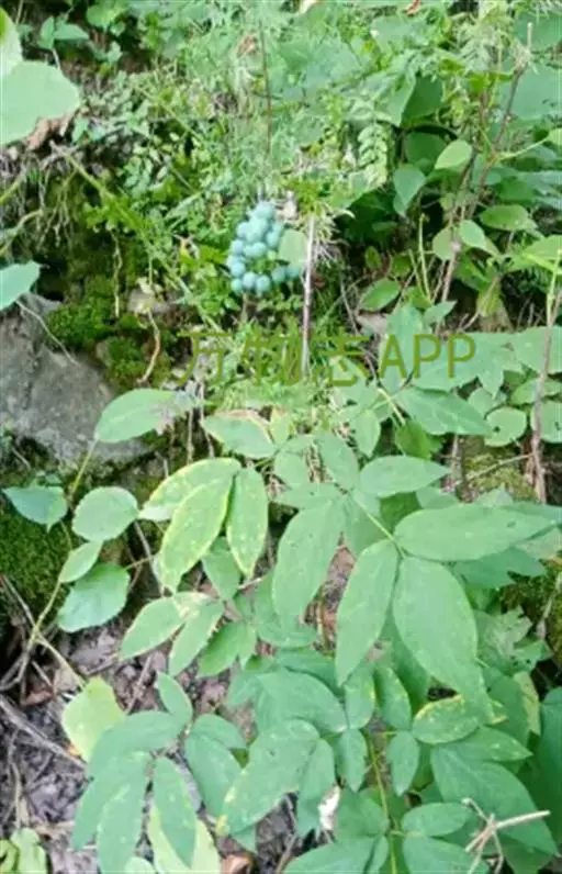 红毛七,又名类叶牡丹、红毛三七。多年生草本,高40-70cm。根茎粗壮,具不明显的节,须根多数,密生,红褐色。叶互生,着生于茎顶端,为二至三回羽状复叶;一回和二回小叶柄分别长10-25cm和2-8cm,三回侧生小叶近无柄,顶生小叶柄长1-5cm;小叶片卵形或椭圆状披针形,长3.5-9cm,宽1.4-5cm,先端渐尖,基部宽楔形,全缘或有时2-3裂,两侧通常不对称,上面绿色,下面灰白色。短圆锥花序顶生,小花梗细长,基部有卵状披针形小苞片;花黄色,小形,直径约1cm;萼片6,花瓣状;花瓣6,退化或线形;雄蕊6,花药先端2瓣裂;雌蕊1,子房1室,内含2胚珠,花柱短,柱头侧生。蒴果极易开裂,露出2个种子呈果实状。种子球形,成熟后蓝黑色,外面微被白粉。花期4-6月,果期7-8月。