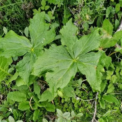 多年生草本,有匍匐状、粗厚、具节的根茎;根生叶1枚,大,盾状,分裂,生于粗厚的柄上其状如伞,花茎亦…