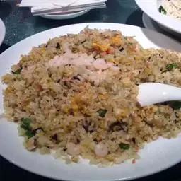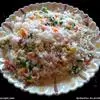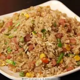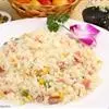 2.将锅放在大火上,内加入猪油烧制五成熟,放入葱花、姜爆香,然后将辅料中的鸡丁、瘦猪肉、虾仁、熟火腿丁、香菇丁分别到入锅中炒熟。出锅后放凉备用;