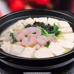 豆腐煲是一道美味可口的名肴,属于粤菜系。主料:北豆腐、蟹味菇、瑶柱、鲜茶树菇
