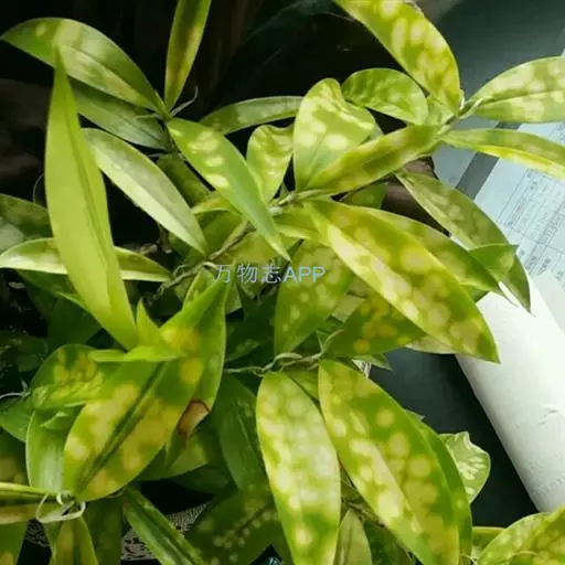 单叶对生或三叶轮生,长椭圆形,浓绿色或橄榄色,叶面上布满乳白色或黄色的小斑点。花黄绿色,花期5月。