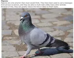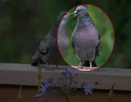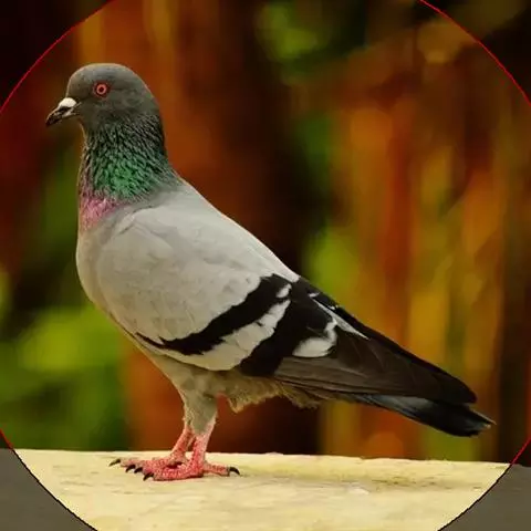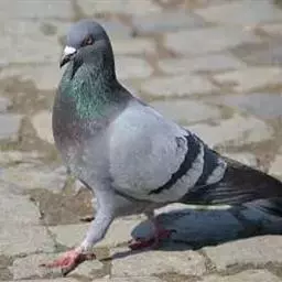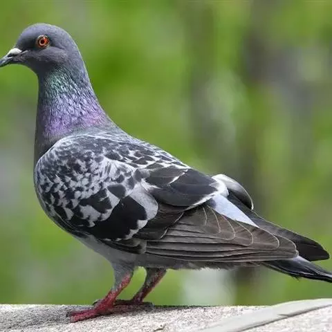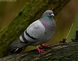 原鸽(学名:Columba livia):体重194-347克,体长295-355毫米。是中等体型的蓝灰色鸽。翼上横斑及尾端横斑黑色,头及胸部具紫绿色闪光。头、颈、胸、上背等均暗石板灰色,下颈及上胸有些金属绿色和紫色闪光,背面余部淡灰色;下体自胸以次亦然;尾具宽阔的黑端,但无白色横斑。雌雄同色,但雌鸟体色一般要暗一些。虹膜橙红色,嘴浅角色,基部呈紫红色;跗蹠及趾为黄铜色至洋红色,爪黑色。