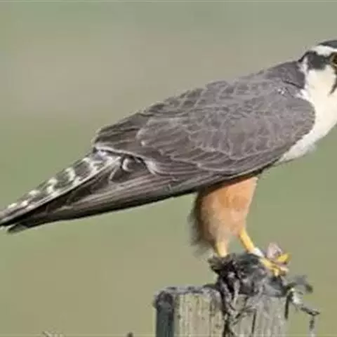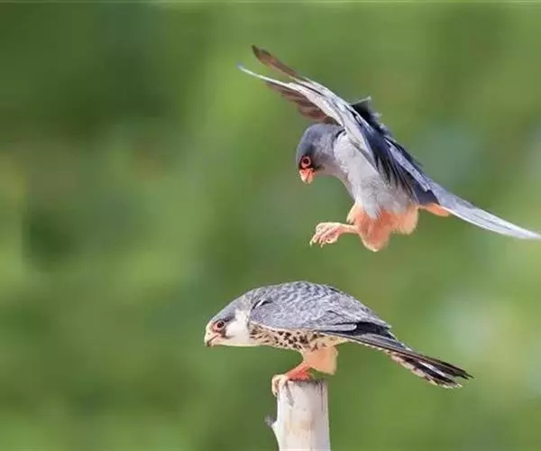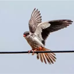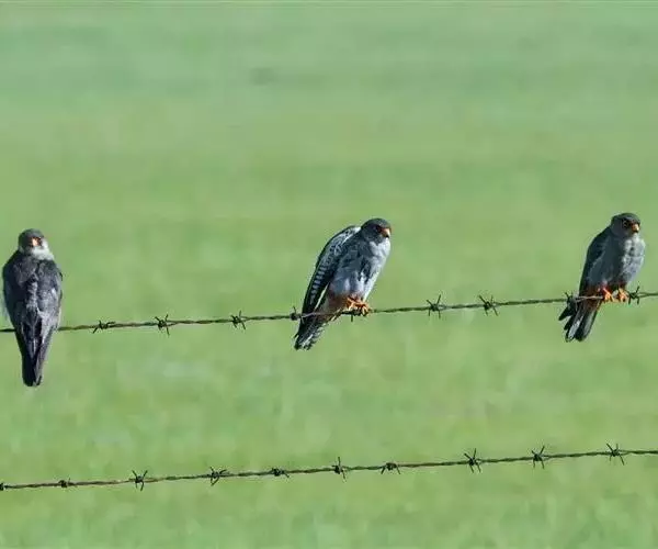 红脚隼(读音:hóng jiǎo sǔn)为脊索动物门,鸟纲,隼形目,隼科、隼属动物,又叫青燕子、青鹰、红腿鹞子、蚂蚱鹰 等,是小型猛禽。是国家二级重点保护动物。该物种的模式产地在俄罗斯。它是迁徙旅程最远的猛禽,单程为13 000-16 000公里。
