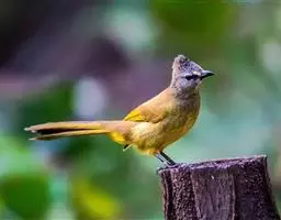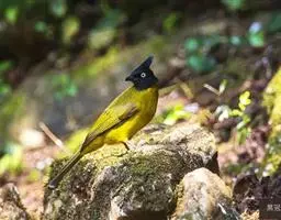 黑冠黄鹎:体长18-21厘米,是一种中等体型偏黄色鹎。整个头、颈、颏、喉黑色,头顶有显著直立的羽冠,…