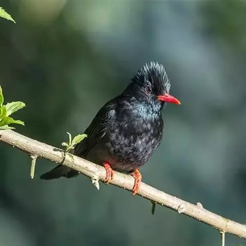 凤头雀嘴鹎:属小型鸟类,体长18-22厘米。嘴粗短、呈象牙色或乳黄色,前额和脸灰色,头顶黑色,…