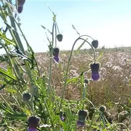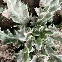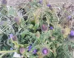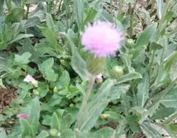 【性状】该品茎呈圆柱形,有的上部分枝,长5-30cm,直径0.2-0.5cm;表面灰绿色或带紫色,具纵棱及白色柔毛;质脆,易折断,断面中空。叶互生,无柄或有短 小蓟幼苗 柄;叶片皱缩或破碎,完整者展平后呈长椭圆形或长圆状披针形,长3-12cm,宽0.5-3cm;全缘或微齿裂至羽状深裂,齿尖具针刺;上表面绿褐色,下表面灰绿色,两面均具白色柔毛。头状花序单个或数个顶生;总苞钟状,苞片5-8层,黄绿色;花紫红色。气微,味微苦。