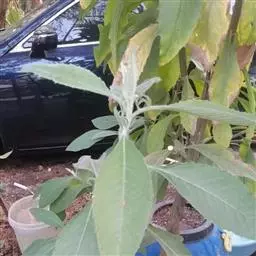叶:下部叶有长达1-2厘米的柄,叶片倒卵形,长7-9厘米,宽3-4厘米,基部楔状渐狭,顶端圆钝,边缘有不规则的密细齿,两面被绢状长柔毛,在下面通常较密,中脉在下面明显凸起,侧脉5-7对,弧状或斜上升,不抵边缘,网脉明显或仅在下面明显;中部叶具短柄,倒卵形至倒卵状长圆形,长3-5厘米,宽2.5-3厘米,基部楔尖,顶端钝或短尖,有时具小尖头;上部叶渐小,近无柄,长1-2厘米,宽0.3-0.8厘米。