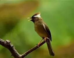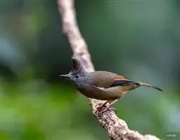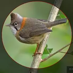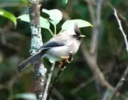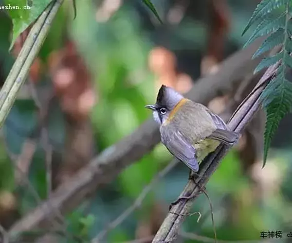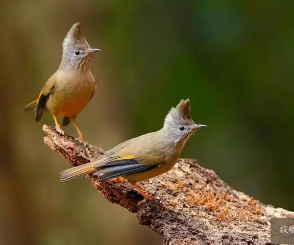 纹喉凤鹛(学名:Yuhina gularis):小型鸟类,体长13-16厘米。头顶和羽冠暗褐色或褐灰色,上体橄榄褐色,飞羽黑褐色,外侧次级飞羽表面橙黄色,构成一块纵形翼斑,极为醒目。颏、喉淡棕白色,具黑色纵纹,腹和尾下覆羽橙黄色。