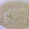 4. 起锅,依序将奶油、做法1的洋葱、洋菇、培根、青豆仁放入稍微炒一下,再放做法3的面及鸡高汤少许,最后加做法2后立即关火,待收汁即可食用。