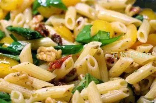4.斜管面(Penne):Penne其斜口处类似鹅毛笔笔尖的造型,中空部分与表面浅刻纹可吸附水分较多的酱汁,特别适合搭配番茄面酱或意式肉酱。煮熟时间:6~8分钟。
