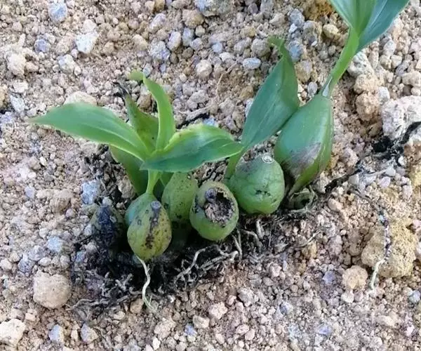 栽培3年左右, 每株带有饱满的假鳞茎5个左右时即可整株采收。如果利用组培苗种植, 由于在组培瓶中所形成的假鳞茎比较微小, 种植到田间后, 新生的假鳞茎逐步长大, 原有的假鳞茎几乎不会进一步发育长大, 因此需延长采收年限, 否则假鳞茎的体积和重量均较小, 影响产量。采收完后可鲜用或烘干。
