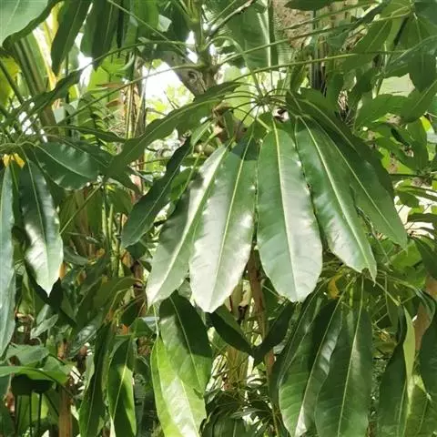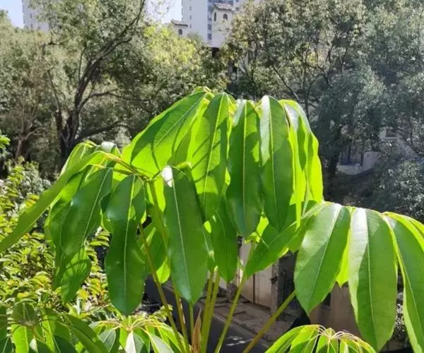 昆士兰伞木,吕松鹅掌柴 ,称昆石兰遮树,澳洲鸭脚木、方式叶鹅掌柴、伞树、大叶伞。叶片阔大,柔软下…