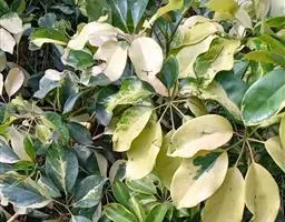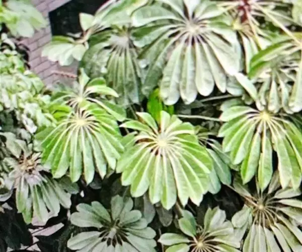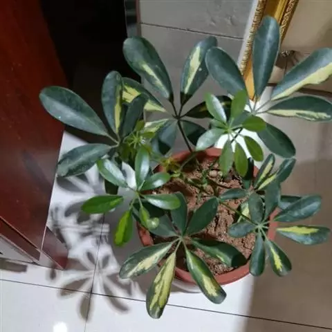 (1) 斑叶伞树(var.variegata):又称斑叶鸭脚木。叶深绿色,叶面有不规则的乳白色斑纹。
