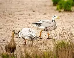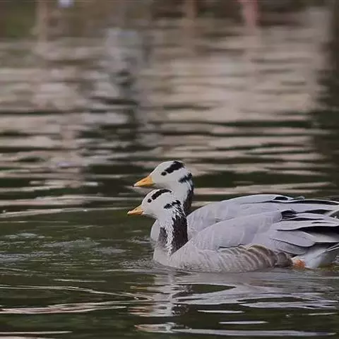 斑头雁是雁形目鸭科雁属鸟类,又称白头雁、黑纹头雁。通体大都灰褐色,头和颈侧白色,…