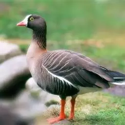 小白额雁鸭科雁属鸟类,体长53-66厘米,翼展120-135厘米,体重1400-2300克。腿桔黄色,…