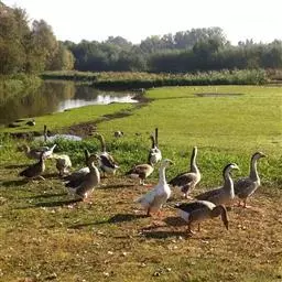 狮头鹅为目前我国农间培育出的最大优良品种鹅,也是世界上的大型鹅之一。原产广东潮州市饶平县浮滨乡。多分布于澄海、潮安、汕头市郊。羽毛灰褐色或银灰色,腹部羽毛白色。头大而眼小,头部顶端和两侧具有较大黑肉瘤,鹅的肉瘤可随年龄而增大,形似狮头,故称狮头鹅。