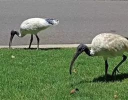 圣鹮头、颈黑色,身体白色,初级和次级飞羽尖端黑色。喙长且厚、黑色下弯,跗蹠与趾黑色。…