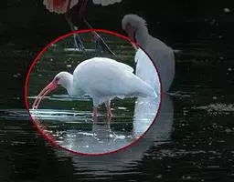 美洲白鹮(学名:Eudocimus albus):是一种大型涉禽。体长56-58厘米,体重750-1050克。头和颈裸出,喙很长,向下弯曲。飞行时颈和脚伸直,交替地拍动翅膀和滑翔。成年美洲白鹮,除了嘴和腿部是橘红色,翅膀末端有黑色外,全身都是白色的。常聚成大群繁殖,在灌丛和树林下层以树枝建造结实的巢。每窝产卵3-5枚,卵暗白色或具褐斑。