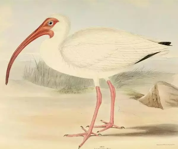美洲白鹮:是一种大型涉禽。体长56-58厘米,体重750-1050克。头和颈裸出,喙很长,向下弯曲。…