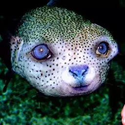 绿河鲀又叫潜水艇、金娃娃、狗头、鸡泡鱼,属于鲀科观赏鱼,可以叫做斑点-绿色-河鲀。学名Tetraodon nigroviridis。在野生环境中可以长到17厘米,但在水族箱中通常长不到那么大,市场上出售的多在5厘米左右,是热带观赏鱼中很受欢迎的鲀科观赏鱼,与河鲀属于一个品种,幼体无毒(约3厘米左右),成体有毒