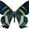 巴黎翠凤蝶中型凤蝶,躯体黑褐色,散布绿色亮鳞。后翅M3脉端有一明显叶状尾突。翅背面底色黑褐色,密布…