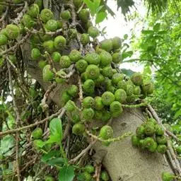 聚果榕(学名:Ficus racemosa L.)是桑科榕属植物,乔木,高达25-30米,胸径60-90厘米,树皮灰褐色。叶薄革质,椭圆状倒卵形至椭圆形或长椭圆形,长10-14厘米,宽3.5-4.5厘米。榕果聚生于老茎瘤状短枝上,稀成对生于落叶枝叶腋,梨形,直径2-2.5厘米;雄花生于榕果内壁近口部,无柄,花被片3-4。花期5-7月。