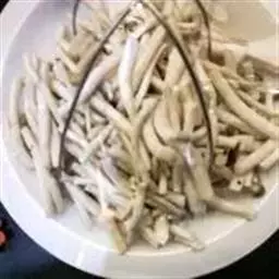 1.将牛瘦肉、鸡腿肠、红尖椒、香菇分别切成丝,备用