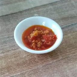 3.将泡好的面加入蛋糊,再加入蕃茄酱、随面附带的调料,搅拌均匀成糊状