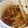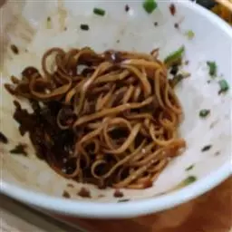 (3)将面条用热水冲泡3分钟后沥干,用蒜辣酱料包拌匀成干拌面。