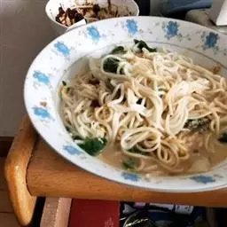 用料:任意自己喜欢口味的方便面一包,冷冻小馄饨若干,青菜少许。