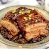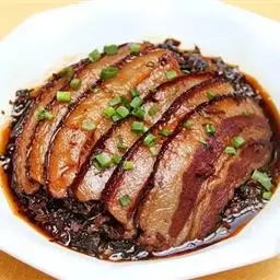 梅菜扣肉,汉族传统名菜,属客家菜 。制作材料有五花肉、梅菜、葱白、姜片等。