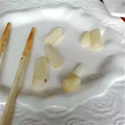 3)半杯油倒入锅里,炒香姜片和葱段。