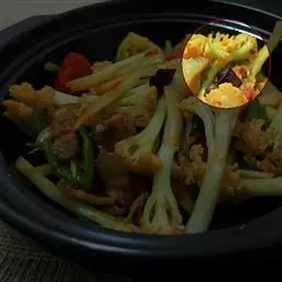 干锅花菜,是湘菜常见的一道菜,以花菜、秀珍菇、蘑菇、青红尖椒为主要食材,…