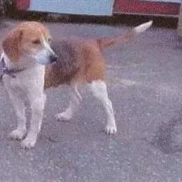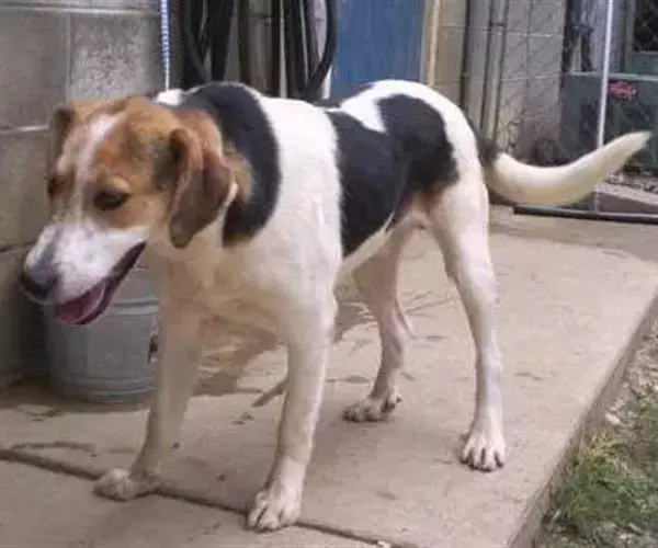 英国猎狐犬 猎狐犬(Foxhound)头部头骨宽,脸吻部长度适中,尖端变细。耳根位置低,耳朵挨着两颊下垂。眼睛较大,淡褐色或茶色。鼻子长而宽,鼻孔敞开。颈部长但不厚实。胸部厚实,肩膀宽阔,胸围很大,肌肉发达,心脏有充足的空间。背部平直。腹部适度紧缩上提,肋骨端部到后腿距离比较大,因此步伐跨距可以很大。 四肢非常结实有力,骨骼粗,肌肉发达。前腿直。猫状圆形足,紧握,肉趾发达,脚尖隆起,脚趾并紧,爪有力。尾根厚实,尾端细,尾部内侧有饰毛。尾跟位置高,如刀形,向上弯曲,但不是朝背上卷曲。被毛坚硬,有光泽,毛长中等。 毛皮颜色可以是各种颜色,每只狗的颜色既斑纹差别变化极大。英国猎狐犬肩长而且被发达的肌肉覆盖,不笨重,特别是在外形上。额突出,但不高或尖削。长度和宽度适中,公犬在耳朵前的转长足有40.6厘米。鼻子长(10.8厘米)而宽,鼻孔张开。耳朵位置低并紧贴着面颊。